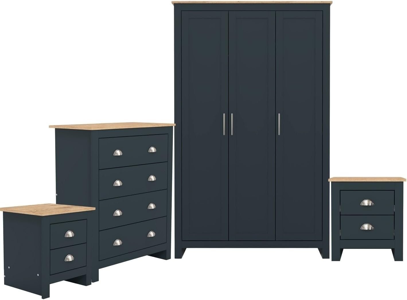 GFW Lancaster 4 Piece Bedroom Set Slate Blue Bedside Cabinet Chest Of Drawers Wardrobe